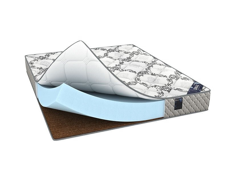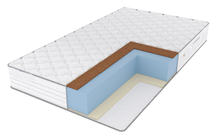 Внешний слой одной стороны – латекс. Он отвечает за мягкость и комфорт во время сна. Эластичный слой подстраивается под контур тела и обладает микромассажным эффектом. Вторая сторона более жесткая и представлена кокосом. Кокос имеет высокие ортопедические свойства и положительно влияет на позвоночник. Оба материала не вызывают аллергию и долго служат.