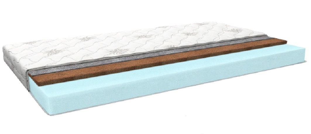 Слой латексированной кокосовой койры наделяет матрас необходимой жесткостью. При этом отлично пропускает воздух, обладает антибактериальными свойствами, высоким ортопедическим эффектом и рекомендован в качестве наполнителя детских матрасов. Прессованные волокна кокосового дерева, скрепленные натуральным латексом не вызывают аллергии, позволяют телу дышать и полноценно отдыхать.